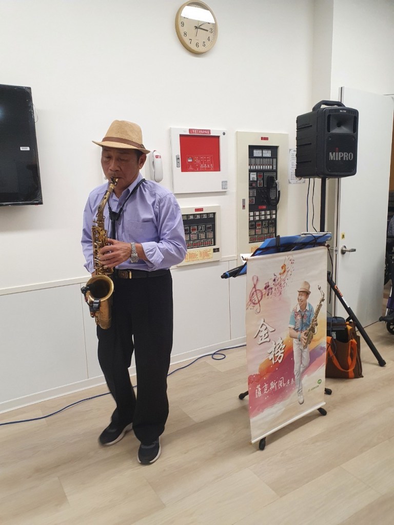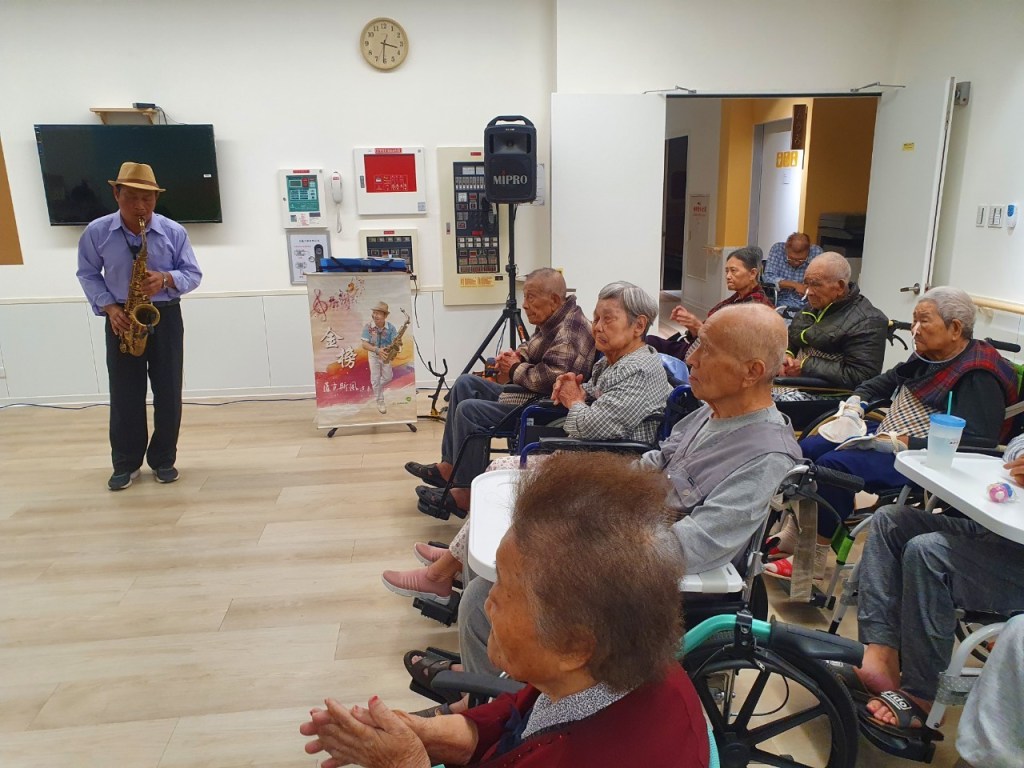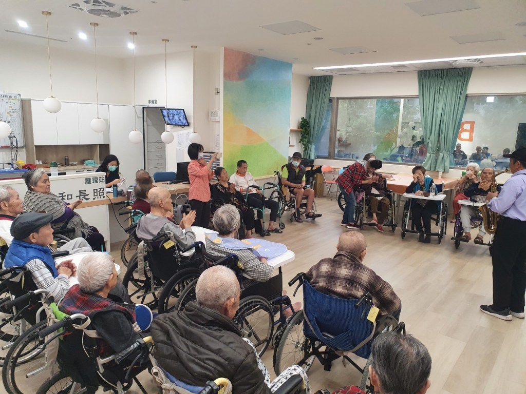外面天氣冷冷的,機構內熱鬧且溫暖,街頭藝人-黃金榜先生熱帶來多首歌曲,還有長輩點歌,"望春風""我是台東人""最後一夜""站在高崗上"…..,輕快的歌曲可以讓長輩運動手臂喔!
